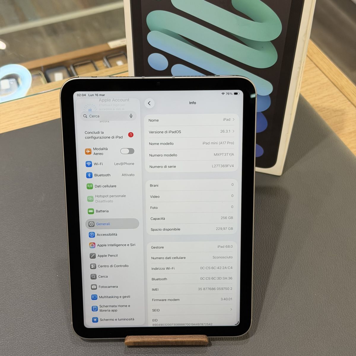 Articolo: IPAD MINI A17 PRO 256GB CELLULAR GRIGIO SIDERALE